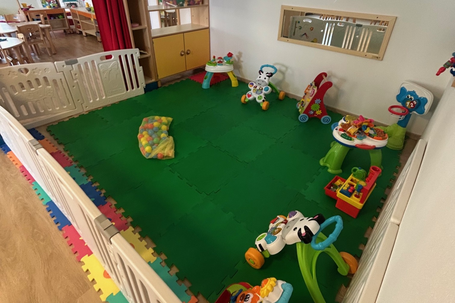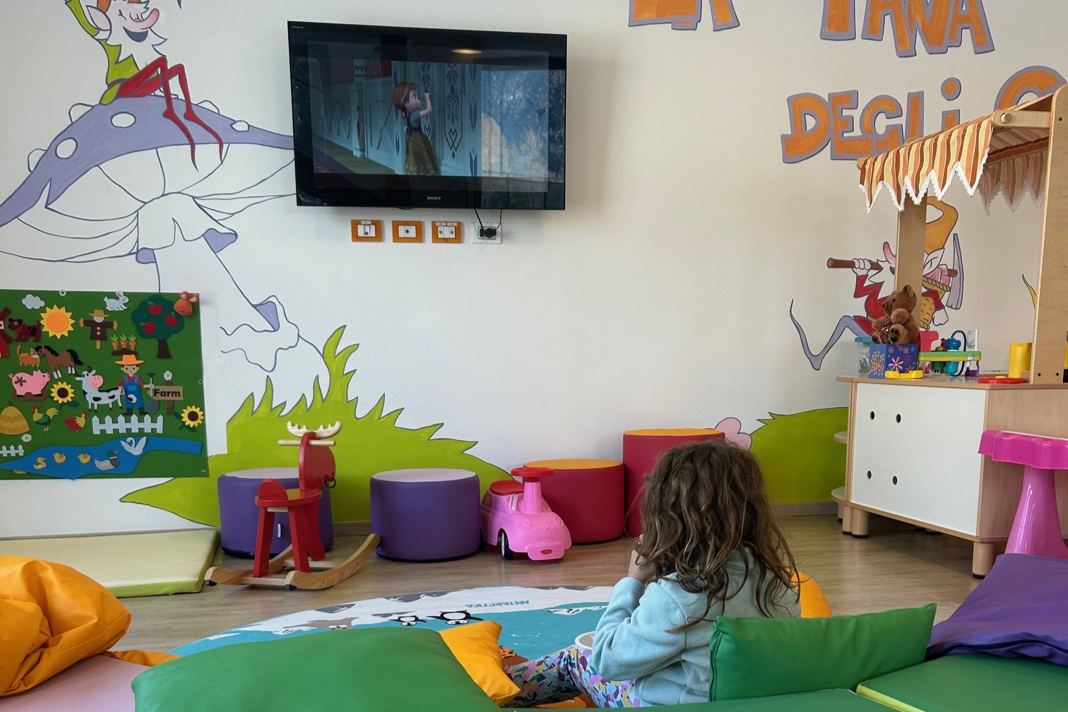 On sunnier days, the outdoor playground is a free alternative for parents who have the opportunity to look after their own children, having fun among swings, slides, tunnels, and colorful hiding places.