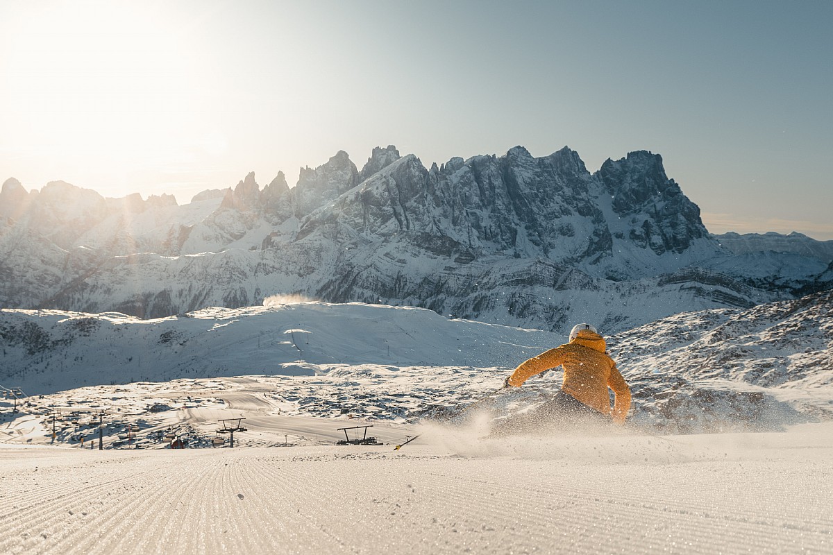 Enjoy around 33 km of slopes, 15 modern lift facilities and 22 panoramic runs in one seamless tour between Trentino and Veneto — offering constantly changing scenery, exciting variety and breathtaking views.